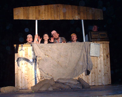 Regie: Vincent Dono Alle Mieter des Herrn Anselme wohnen in demselben Haus und sind Mitglieder derselben Musikkapelle. Als die Gebeine eines Ermordeten gefunden werden, sind alle überzeugt, dass der Mörder nur "X" sein kann. Aber nach der letzten Verfolgungsjagd wird man feststellen, dass der Täter nicht derjenige ist, den man vermutet. "Le Troupô" besteht aus Studenten der Theater-, Literatur- und Kommunikationswissenschaft. Seit vier Jahren spielen sie die seltsamen Abenteuer des Monsieur Anselme, eines "Un-Helden", und zwar jedes Jahr eine neue Episode. Die Gruppe bevorzugt Theaterstücke, die auf das Visuelle setzen. Beim Theaterfestival 2002 in St. Lous gewann "Le Troupô" den Zuschauerpreis. Französischkenntnisse sind nicht vorausgesetzt um der Vorstellung zu folgen. |
