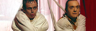 Regie: Raimund Wallisch Eine ländliche Gesellschaft, repräsentiert durch den Chor fünf SchauspielerInnen, ein Musiker. Wir erkennen Franziska, die ehrgeizige Großbauernerbin. Georg, den Sohn des durch Selbstmord verstorbenen Büchsenmachers. Gabriel, das angebliche Findelkind der Büchsenmachermeisterfamilie und schließlich Samiel, den Geist des verstorbenen Büchsenmachers. Der Vater sitzt den Söhnen im Nacken und quält sie noch aus dem Jenseits vor sich her. Franziska wünscht sich ein Kindlein und die Männer stehen bei ihr ohnedies Schlange. Wen also auswählen? Gabriel, das Vieh von Mann, oder Georg, die Sandkastenliebe? Georg! Der kann sein Glück kaum fassen: die Franzi, die Limousine, der Urlaub, die Dynastie, der erste Platz im Dorf. Das Lebensglück zum Greifen nahe. Doch Gabriel beißt die Eifersucht, die grausliche, ins Herz. Ein Plan, ein hinterhältiger muß her... Das schauerromantische Gespenstermärchen Der Freischütz aus dem Gespensterbuch von Apel und Laun (1810) bildet die Grundlage für diese Produktion. Der Stoff diente bereits gleichermaßen erfolgreich Carl Maria Weber und seinem Librettisten Johann Friedrich Kind als auch Robert Wilson, William S. Burroughs und Tom Waits als Quelle damals für eine romantische Oper, dann für ein Musical. |