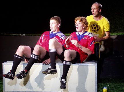 Ein Stück Fußball von Andri Beyeler Immer wieder laufen sie sich warm. Immer wieder stellen sie sich die bewundernden Blicke der Mädchen vor. Und immer wieder hacken nur die anderen ihre Stoppel in den Rasen, der ihnen alles bedeutet. Wie die beiden Alten in der Muppetshow kommentieren sie die Spiele, bei denen sie nicht mitspielen dürfen, warten auf ein Tor. Kick & Rush“ ist ein Stück über drei junge Fußballer, die bei einem Provinzklub nie zum Zug kommen, immer auf der Ersatzbank sitzen und darauf warten, endlich ins Spiel zu kommen. Chrigel, der Beisser, will es mit Gewalt erzwingen. Mischa, der Softie will ..., das weiß er selbst nicht so genau, und Lorenz, der Zyniker will ... eine Band gründen. Der Schweizer Autor Andri Beyeler ist Fußballspieler. Linker Außenverteidiger bei den Old Boys New Wave. Und Andri Beyeler ist Autor. 2004 wurde er gleich mit zwei Stücken für den deutschen Kinder- und Jugendtheaterpreis nominiert. Regie: Manfred Weissensteiner und Verena Kiegerl |