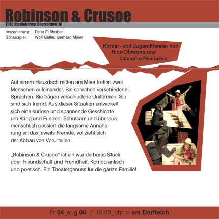 | Information: Agentur DI Ulli KOLLER Ing. Thomas STIEGLER Weissenbach 209 8967 Haus im Ennstal Mob. 0664-1454969 ulli.koller@gmx.at www.theatertage.at |