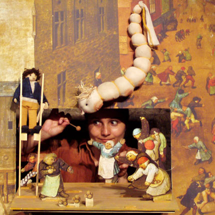 Karin Schäfer hat dieses Bild nun zur Grundlage eines ebenso faszinierenden wie vergnüglichen Figurentheaterstückes gemacht: Hoorst van Foorst, der holländische Holzwurm, dessen Familie schon seit undenklicher Zeit im Rahmen dieses Bildes lebt, erscheint plötzlich mitten im Vortrag der Ausstellungsleiterin Frau Wurm.