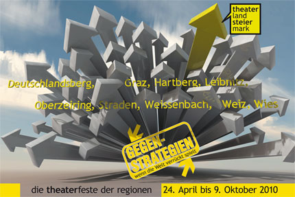 Netzwerk | Partner 2.10Das Andere Theater | IG Theater Hunger auf Kunst und Kultur Kulturinitiative Kürbis Wies | Marktgemeinde Wies Kulturservice Gesellschaft Steiermark LAUT! | Landesverband für außerberufliches Theater Lutkovno Gledalisce Maribor Stadtgemeinde Hartberg | Kulturreferat Straden Aktiv Theaterfabrik Weiz | Stadtgemeinde Weiz Theaterzentrum Deutschlandsberg | Stadtgemeinde Deutschlandsberg THEO | Theater Oberzeiring TTW-10 | Marktgemeinde Haus uniT | Verein für Kultur an der KF UNI Graz |