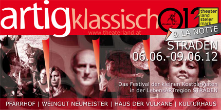 Im Vorjahr haben wir unser „Festival der kleinen Kostbarkeiten“ von seiner künstlerischen Ausrichtung her radikal verändert. In der neuen Reihe ARTigklassisch zeigen wir grosse Klassiker der Weltliteratur in aussergewöhnlichen Inszenierungen an ebensolchen Orten - und wie es sich für eine Genussregion gehört, kommt auch das Kulinarische nicht zu kurz. Gutes Theater, gutes Essen und guter Wein, und das alles in der unvergleichlichen Atmosphäre der südöstlichen Steiermark, ist die Idee, die vom Publikum sofort begeistert angenommen wurde.
