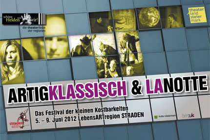 2012 zeigen wir die originäre Musiktheateroperette FLEDERMAUS RETURNS, eine Koproduktion von Verein Panorama - Schloss Damtschach mit dem TAG Wien, interpretiert von den kongenialen Musikern des Kollegium Kalksburg, Georg Büchners WOYZECK, eine THEO Produktion im Hightech-Weinkeller des Weinguts Neumeister und LA LUNA LUNA, eine österreichische Erstaufführung über das Werk von Federico Garcia Lorca, der 1936 von den Spanischen Nationalisten erschossen wurde und dem es – ganz der Idee der steirischen theaterfeste der regionen entsprechend – wichtig war, Theater zu den Leuten zu bringen. So gründete er 1932 eine Wanderbühne, die mit klassischen Stücken durch die Provinz reiste.