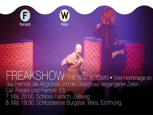 07.05.2015 | 20:00 | Cie. Freaks und Fremde (D) | «FREAK SHOW» | Schloss Farrach, Zeltweg |