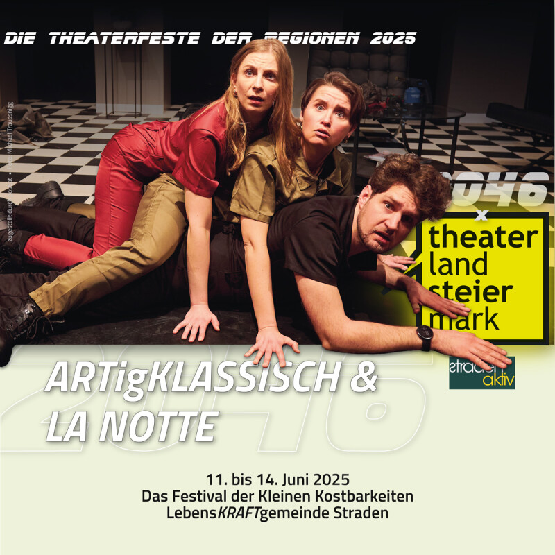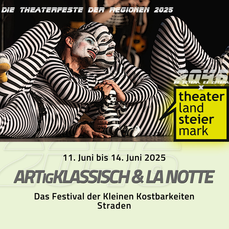 | 12.06.2025 | 20:00 | ABGESAGT: ARTigKlassisch II: Theater DaHeTo | «R+J - BED TIMING» • Eine Love-Rebellion nach W. Shakesp | KulturHaus-Saal Straden, Straden 60 | |