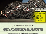 | 14.06.2025 | 19:19 | LA NOTTE 2•25 - Die Lange Nacht! | «Die Lange NACHT der kleinSTkunst» | KulturHaus/KulturHausKeller Straden, Straden 60 | |