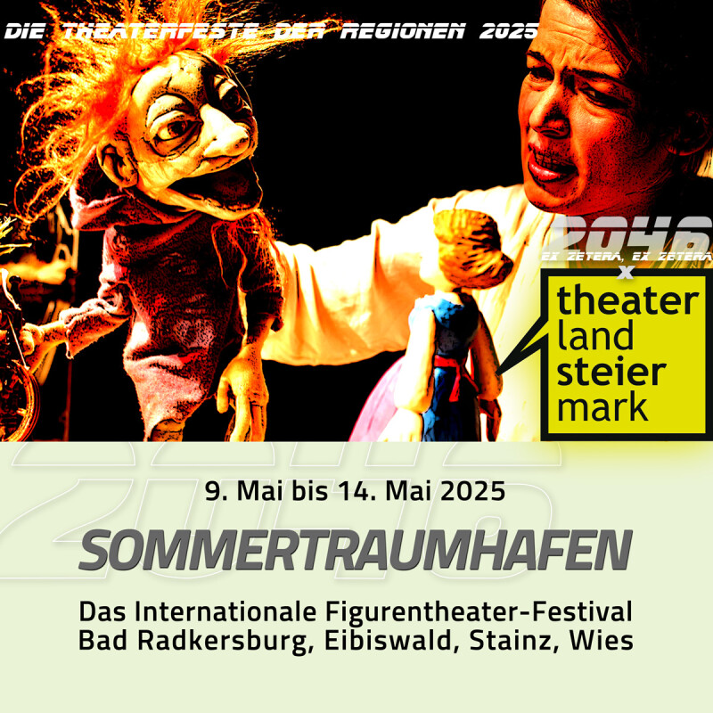 | 09.05.2025 | 08:00 | SOMMERtraumHAFEN 2•25 | Das Internat. FigurenTheaterFest | Bad Radkersburg, Eibiswald, Stainz, Wies | |