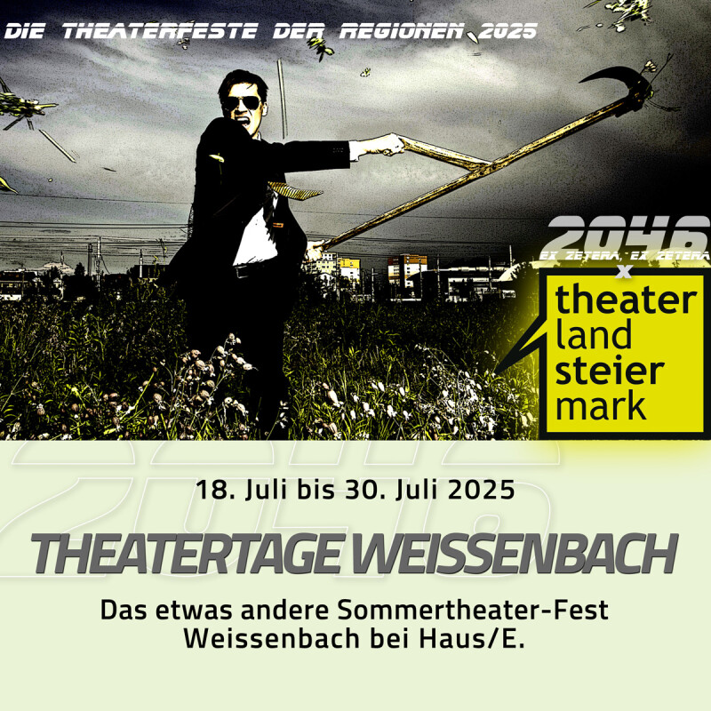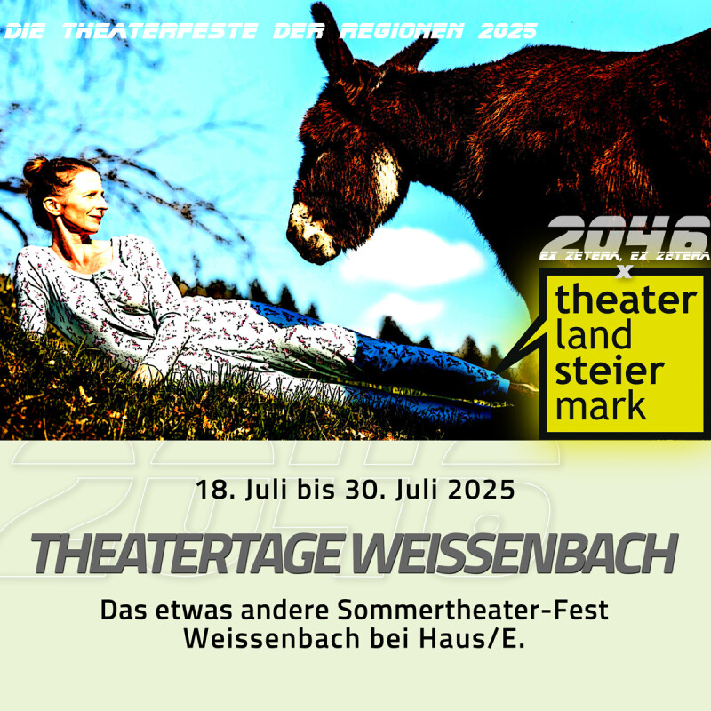 | 30.07.2025 | 19:30 | THEO • Theater Oberzeiring | «HAPPY END [KEINE GARANTIE]» | Theater im Gsöllhof, Weissenbach 26, Haus/E. | |