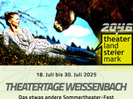 | 18.07.2025 | 19:30 | TTW-25 • TheaterTage-Weissenbach-Eröffnung | PROgramm-Präsentation TTW-25 | Vorplatz des Gsöllhofs, Weissenbach 26, Haus/E. | |